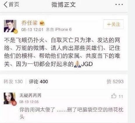 2015年,因为天津滨海的大爆炸事件而起,各路明星都在微博上纷纷祈福平安,但是乔任梁发的微博却引来一片骂声,就因为原本出于好心的他的发文只是用词不当所以才招致很多网友的谴责谩骂。