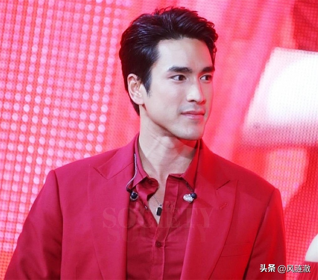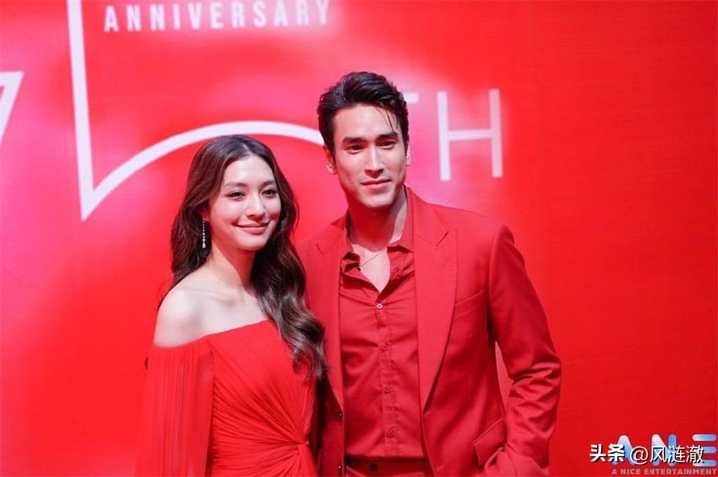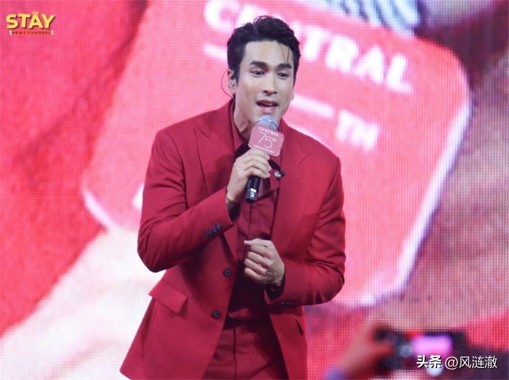 为了配合当天的活动主题,Nadech和另一位明星嘉宾Mew都穿着大红色衣服亮相。