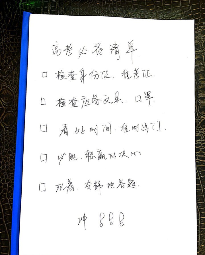 在6月6日高考前一天,杨幂就已经手写了一份祝福语事先送给大家,而且,杨幂还贴心地给大家列出5个清单。