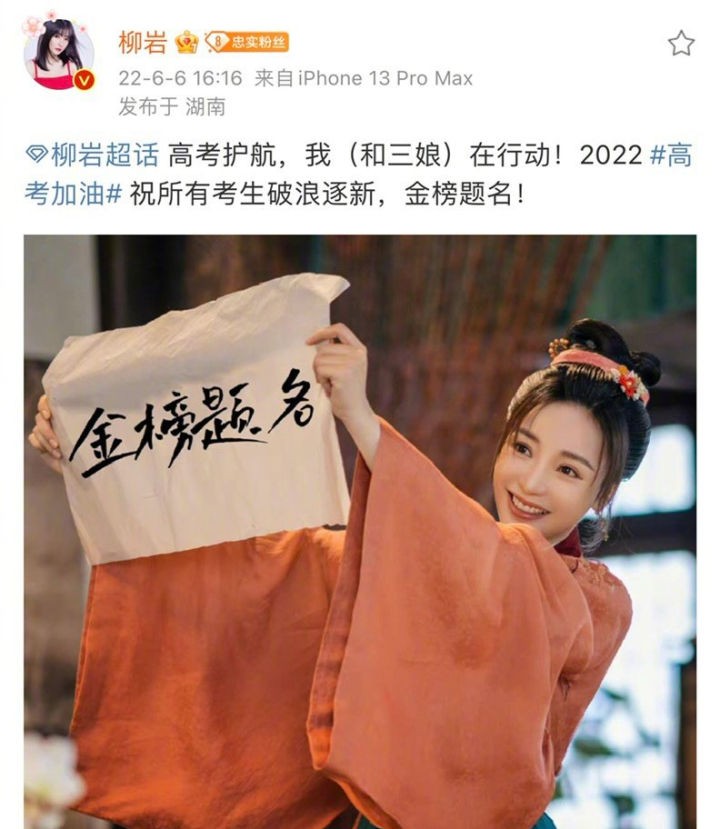 而作为明星,他们也并没有闲着,纷纷以自己的形式为广大的学子们送上自己的祝福和鼓励。