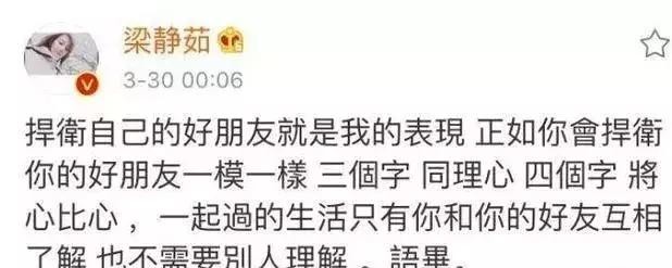 并且重新发文力挺范玮琪,称捍卫自己的好朋友就是自己的表现,像大多数人那样捍卫自己的好友,将心比心,一起过的生活只有你和你的好友互相理解,也不需要别人的理解。