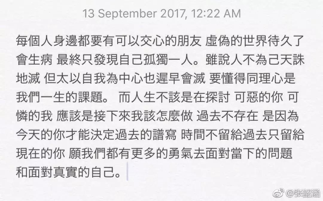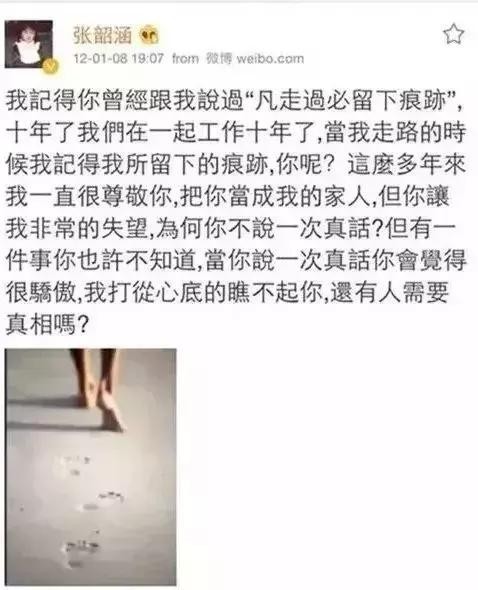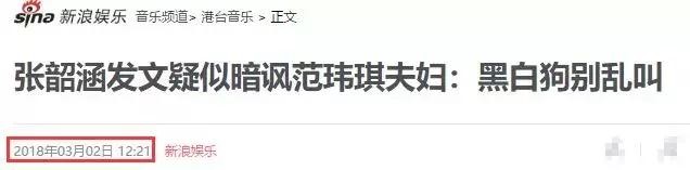 张韶涵也没闲着,在经过背叛后,态度异常坚决。在微博直接喊出“黑白狗”,引发许多网友猜忌。
