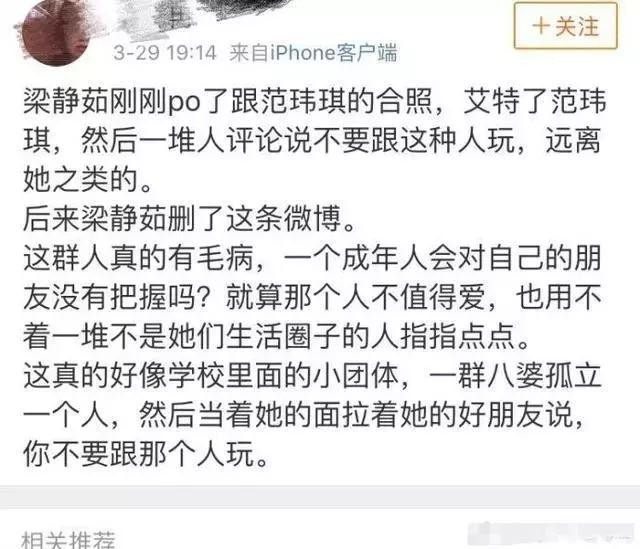 网友表示没想到梁静茹和范玮琪关系竟然这么好,有人为梁静茹的义气点赞,认为谁都受不了别人骂自己的朋友。