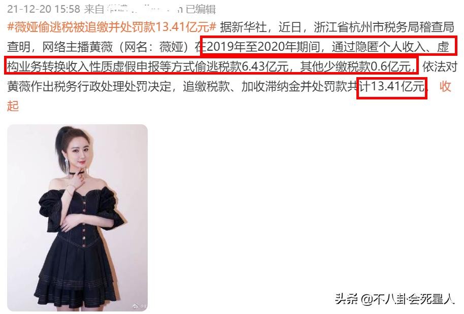 作为带货的一姐,薇娅前段时间被曝出偷税漏税高达6.43亿,追缴税款、加收滞纳金并处罚款就高达13.41亿元。