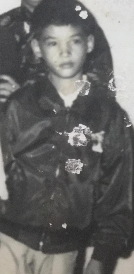 下面这张郭爸比大概也就只有十来岁,是四张当中最为帅气的一张,那时候的他剃了个平头,眼窝比较深,鼻梁高挺,五官立体且俊朗,不愧是中美混血。