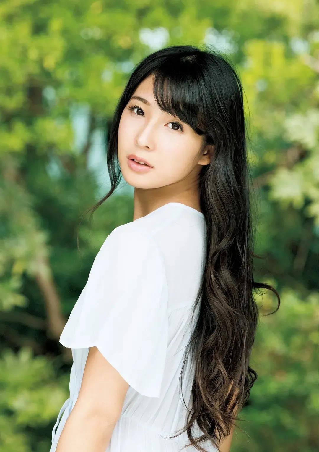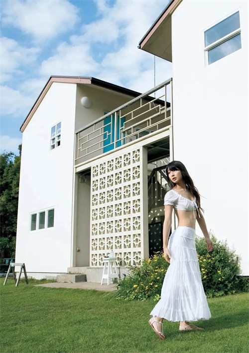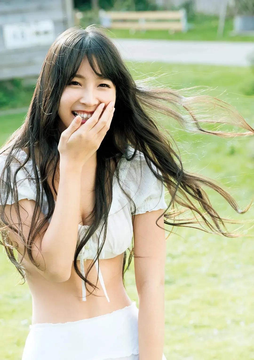 她身穿一件洁白的上衣,宛如初冬的雪花,纯净而高雅。 她的头发如瀑布般披散在肩上,随风轻轻飘动,仿佛在诉说着她的故事。她的微笑如春风拂面,温暖而明媚,让人不禁为之动容。