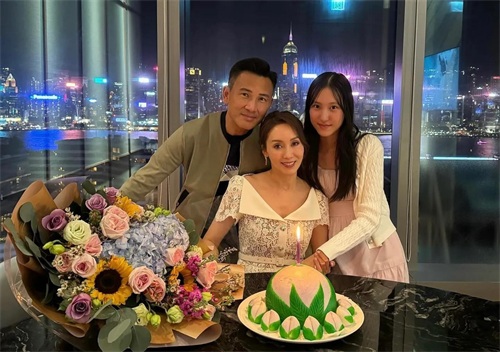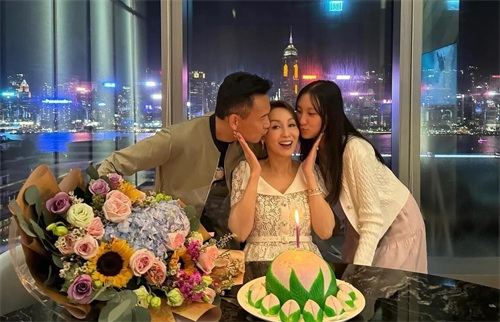 郭可盈晒55岁生日全家福,获老公林文龙和女儿送吻,洋溢满满幸福
