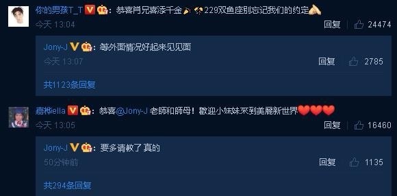 圈内好友也纷纷送上祝福,歌手陈嘉桦Ella表示:“恭喜Jony J老师和师母!欢迎小妺妹来到美丽新世界。”同为说唱歌手的Tizzy T也发文:“恭喜肖兄喜添千金,229双鱼座!别忘记我们的约定。”