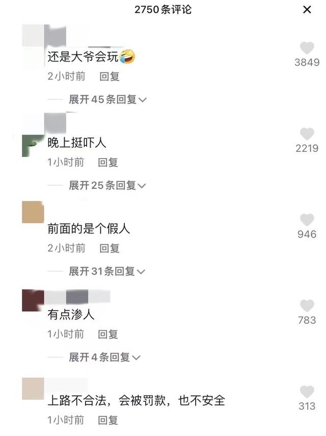 视频发出后,网友们议论纷纷。有网友认为,让“美女”假人驾驶电动自行车“有点瘆人”“晚上挺吓人”,也有网友认为大爷的做法“上路不安全”,“应该让驾驶员也戴安全帽”。