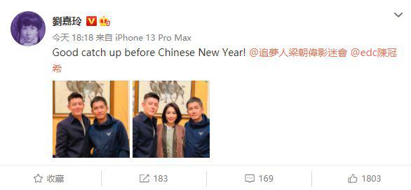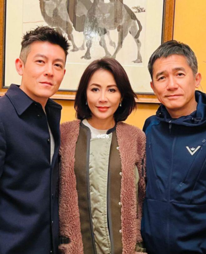 1 月 16 日。刘嘉玲在自己的个人社交账号上晒出了两张照片。照片中是梁朝伟和陈冠希的合照,陈冠希穿的深色的中山装。站在梁朝伟的旁边。而梁朝伟则是穿着深蓝色的休闲运动外套,梁朝伟一手插在裤兜里,另一只手搂着陈冠希,露出了惬意的微笑。