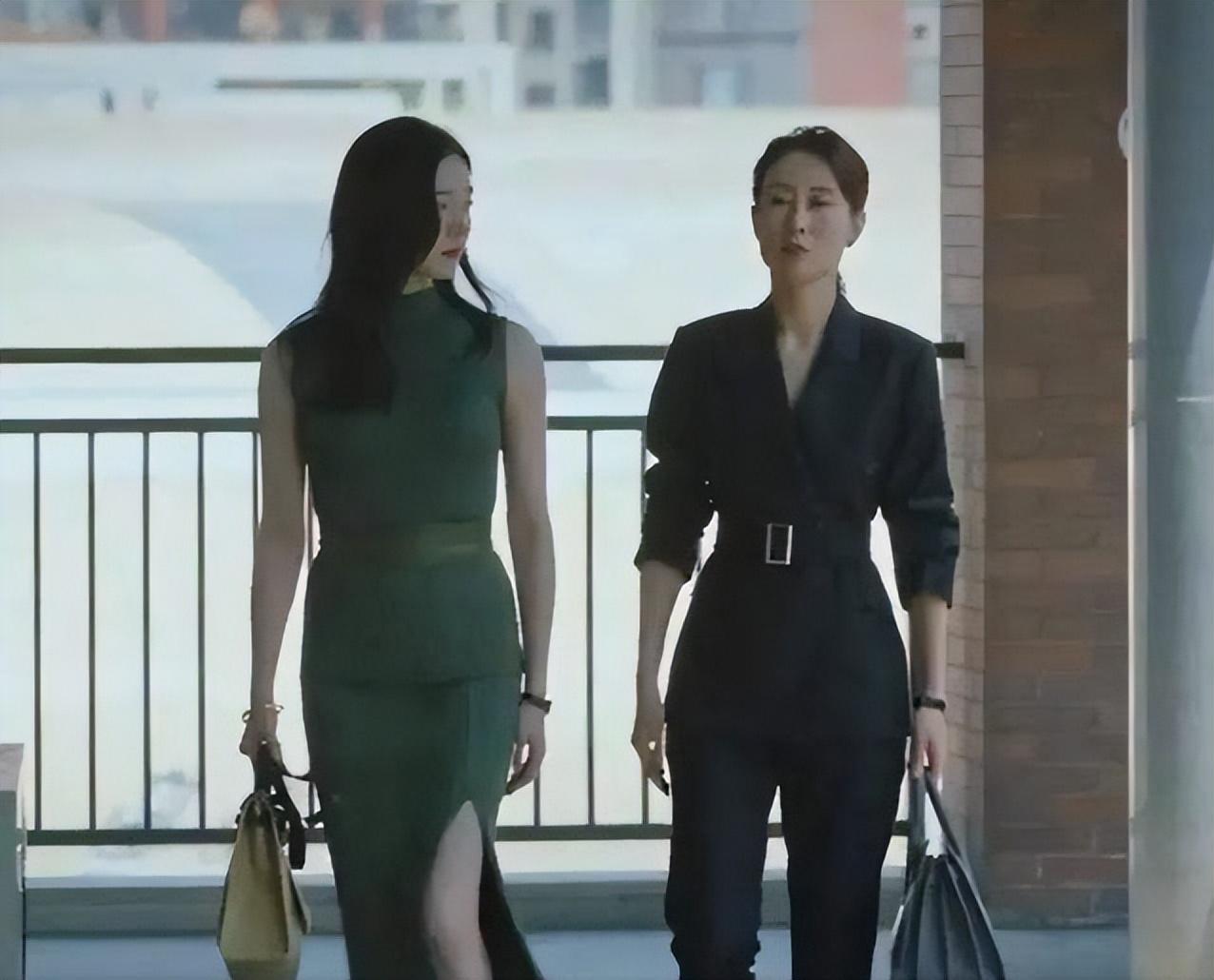 在《女士的法则》里,有一幕就是刘敏涛和江疏影肩并肩走着,46岁的刘敏涛穿了一件黑色束腰西装,反而秒杀了一旁小10岁的江疏影。
