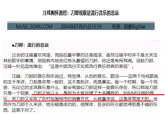 汪峰甚至胸怀激烈,认为“刀郎现象是流行音乐的悲哀。”