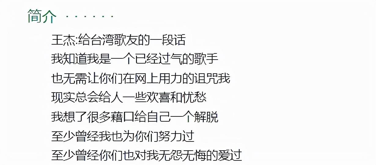 王杰也知道这个现实,所以他特自嘲地创造了《我知道我是一个已经过气的歌手》。
