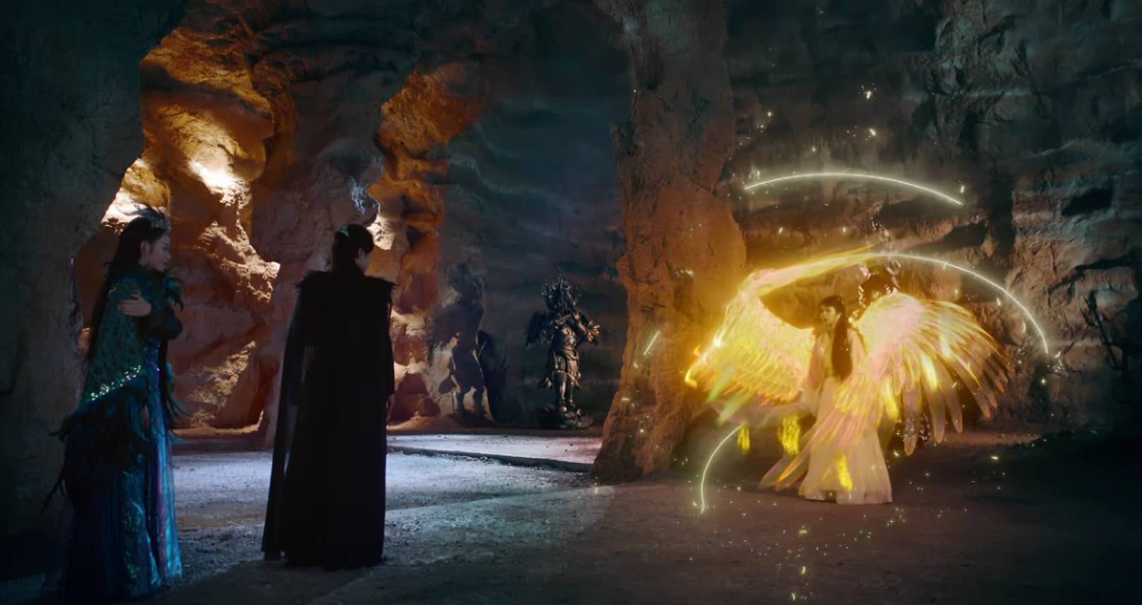 寰谛凤翎再次保护了锦觅,而旭凤,在弥留时刻,只问了锦觅两个问题。