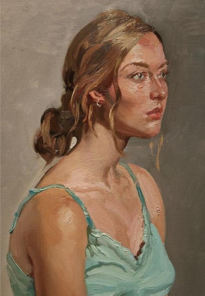 陈丹青人物油画要有素描基础,可以确保人物的形体精准,在他的作品中人物画不在少数,精准地突出了人物的形体特征及表情,他亲自去观察对象的生活,女性大多身材高挑,面容清秀,搭配艳丽,所以他的油画作品中的女人可以脱离媚俗,气质盎然!