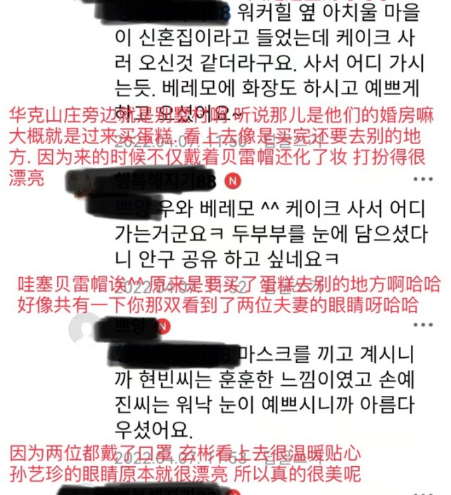 鉴于两人着装正式,该网友推断两人购买完蛋糕后大概率还有其他的行程,除此之外,这位网友在与友人的聊天记录中不忘感叹玄彬与孙艺珍的确相当登对,看来有种童话故事照进现实的梦幻感觉。