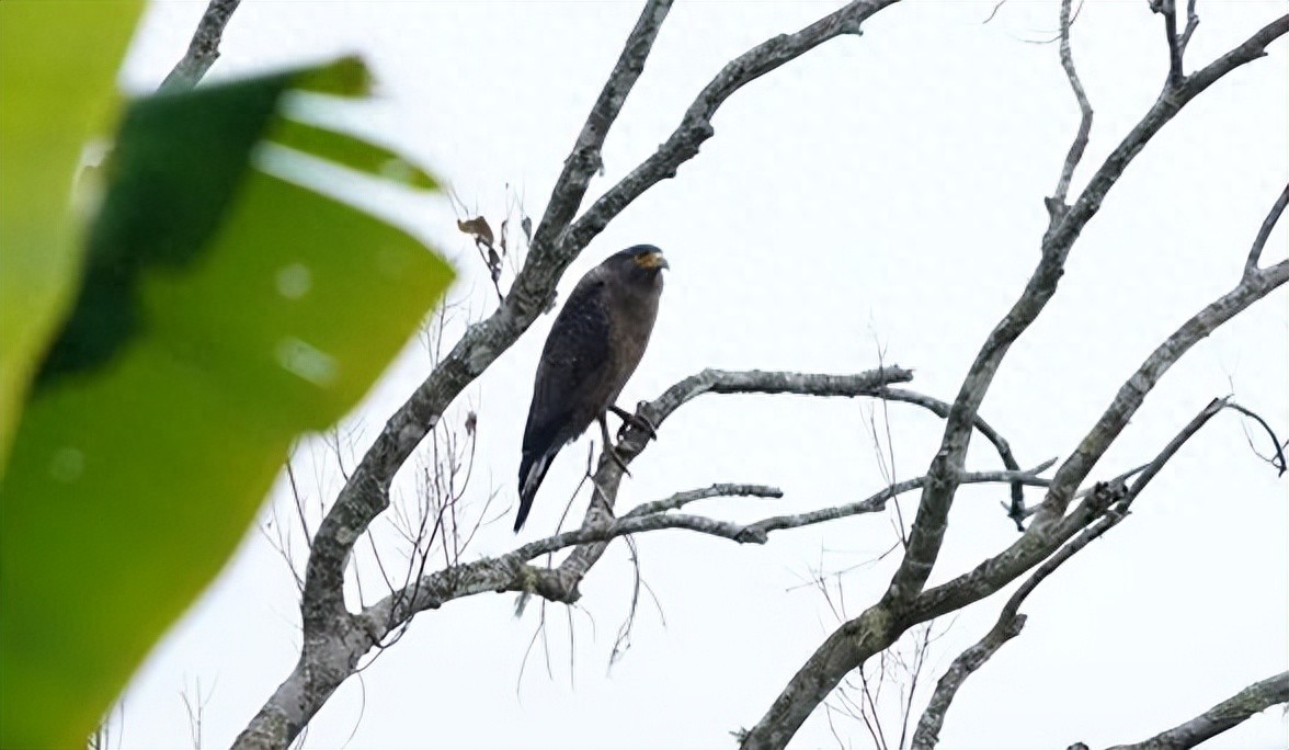 近日,记者在绿春县半坡乡拍到一只老鹰,这只老鹰静静地站在树枝上,凝视着某个地方,似乎在等待猎物的出现,听到声响还不时扭头张望,经过对比确认,该老鹰为蛇雕,属国家二级保护野生动物。
