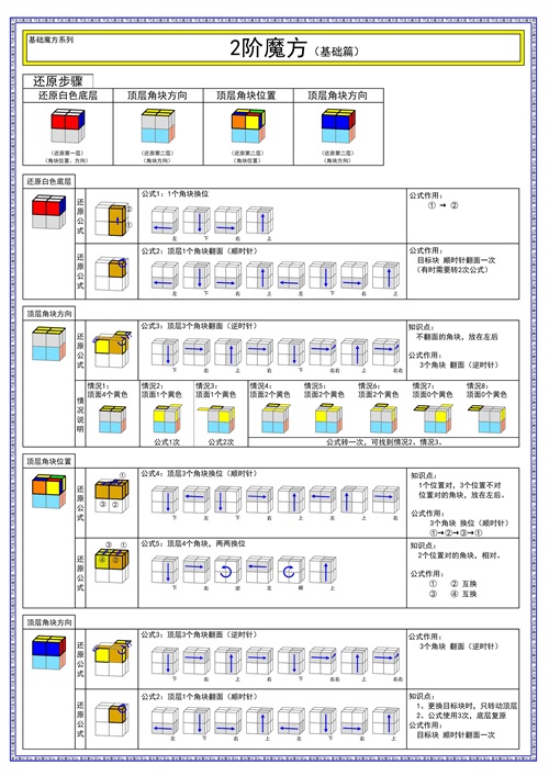 1、入门篇适合完全没有基础的初学者,只使用3个公式,即可还原二阶魔方。