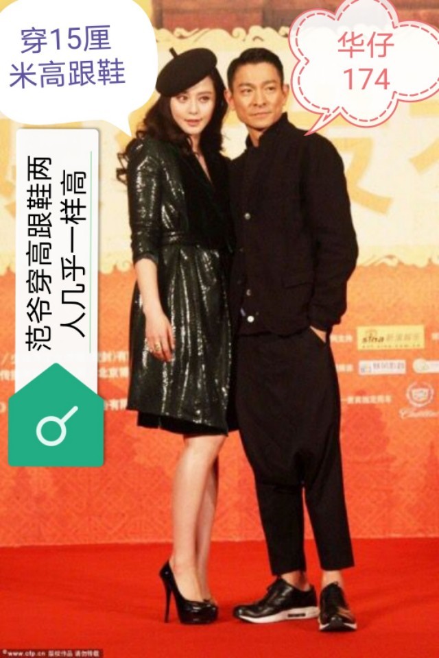 第一张图,刘若英身高160和范冰冰站在一起,两人膝盖平行,身高也一样。由此可断定范冰冰实际身高只有160。