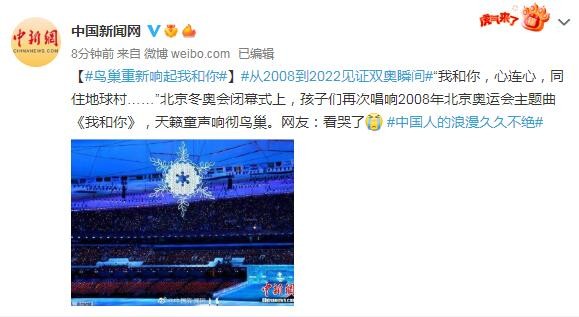 从2008到2022见证双奥瞬间,“我和你,心连心,同住地球村……”北京冬奥会闭幕式上,孩子们再次唱响2008年北京奥运会主题曲《我和你》,天籁童声响彻鸟巢。网友:看哭了。