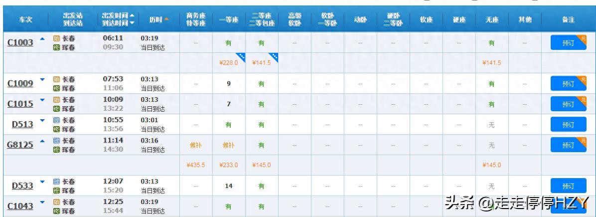 长春到珲春高铁往返290元