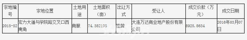 该地块编号为2015-52,占地面积74.4亩,土地用途为商服(含批发零售、住宿餐饮、商务金融,以批发零售为主),容积率1.5-2.2,建筑密度≤70。拍卖起始价为120万每亩,成交总金额为8925.8634万元,出让年限为40年,据新乡365淘房小编计算,楼面价约为817.5元。