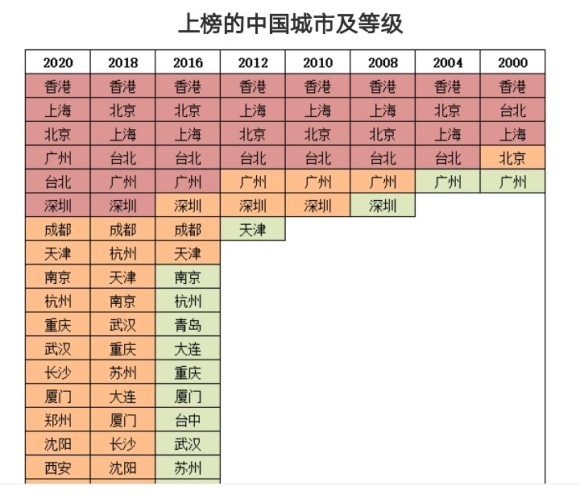 2020年世界一二线城市排名,中国19城入榜,一线6个,二线13个
