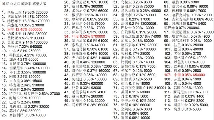 全世界两百多个国家,中国艾滋病患者总人数排名在100名左右,14亿人口,105万艾滋病患者,感染者占总人口比例为0.075%。