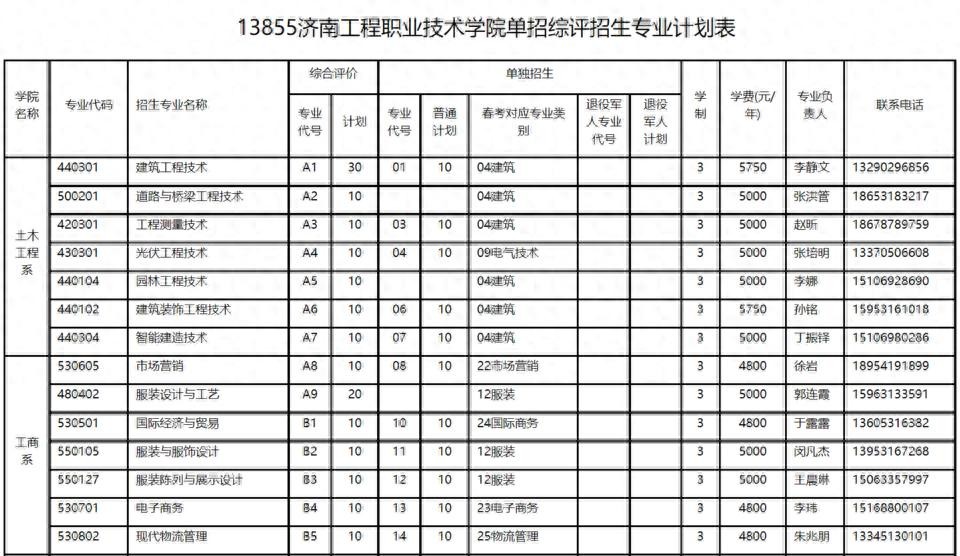 济南工程职业技术学院2025年安排单独招生(普通类)400人,单独招生(退役军人类)100人。综合评价招生500人。济南工程职业技术学院学院代码:13855 ;地址:济南市经十东路6088号 ;办学层次及类型:专科,公办普通高等职业院校。