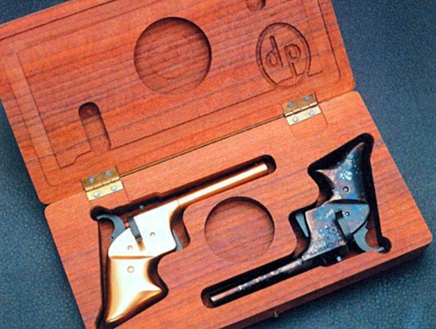 该枪口径为4.3mm,是单发德林杰手枪的复制品。枪体全部由金属制成,除了油膜修饰(图右)的产品之外,意大利彼代尔索利公司公司还生产镀金(图左)等多种不同外观的产品。