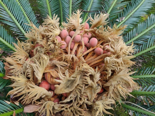 俗话说:铁树开花,哑巴讲话。铁树开花并不多见,铁树结果就更为罕见了。近日,怀化城区、G65包茂高速怀化段洪江收费站的铁树相继罕见地结出了一窝红彤彤的果子,煞是好看。