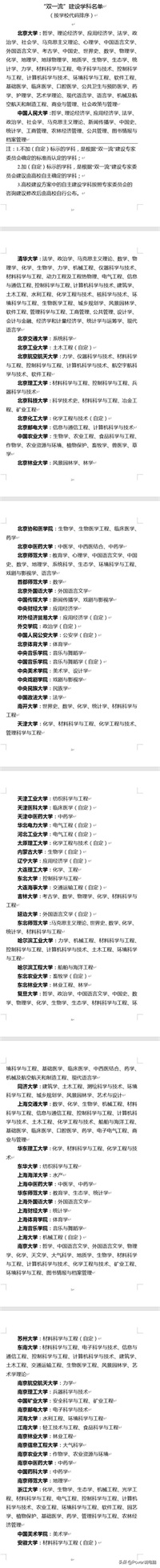双一流建设学科名单一