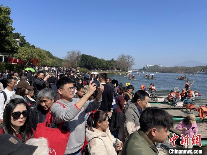 2月11日,中国传统春节大年初二,广西桂林市阳光明媚,吸引众多游客游览打卡桂林城徽象鼻山,欢度春节。