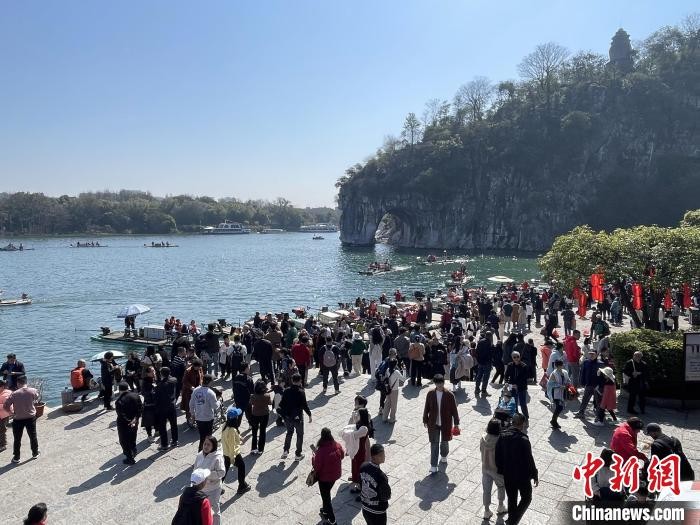 图为桂林城徽象鼻山游人如织。涂丽莎 摄