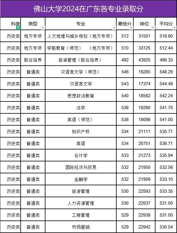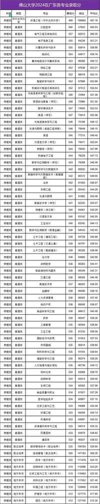 佛山大学2024年广东各专业录取分统计,分数大涨