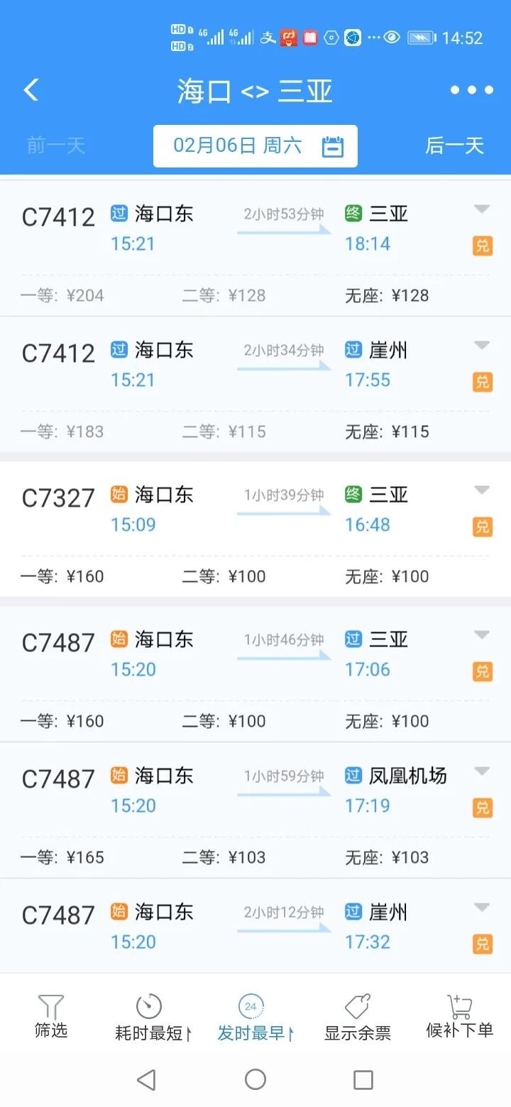 海南环岛铁路海口站至三亚站之间的动车组列车全程最短运行时间1小时43分。