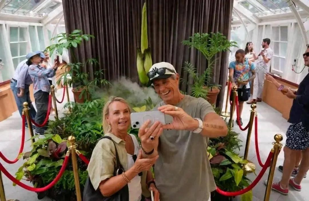 “尸体花”,学名巨花魔芋,原产于印度尼西亚,全球仅存约1000株。它因其独特的气味而得名,许多游客形容这种气味像是腐烂的食物、潮湿的袜子,甚至是大蒜。尽管如此,许多人仍然愿意排队等候,只为亲眼目睹这一自然奇观。