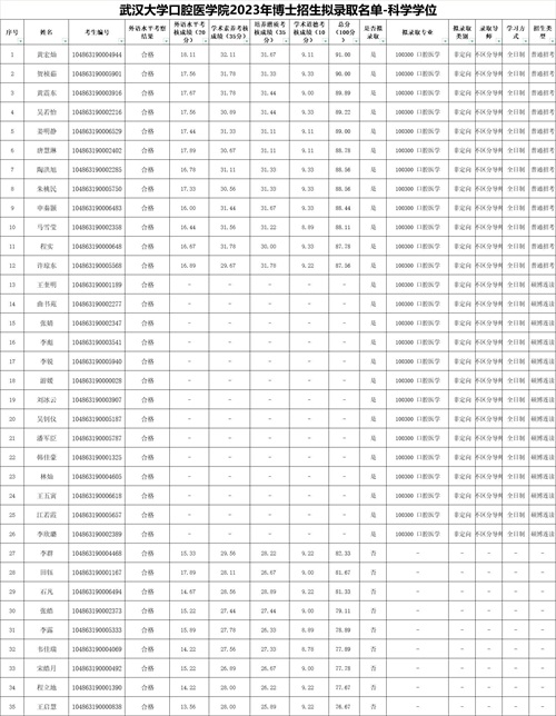 武汉大学口腔医学院2023年博士研究生拟录取名单公示