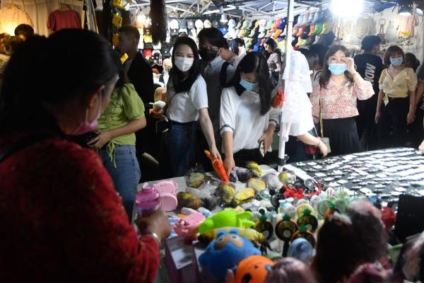 ↑6月8日,市民和游客在杭州“吴山夜市”选购。