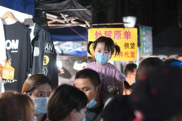 ↑6月8日,在杭州“吴山夜市”,一名小女孩坐在父亲的肩膀上游览。