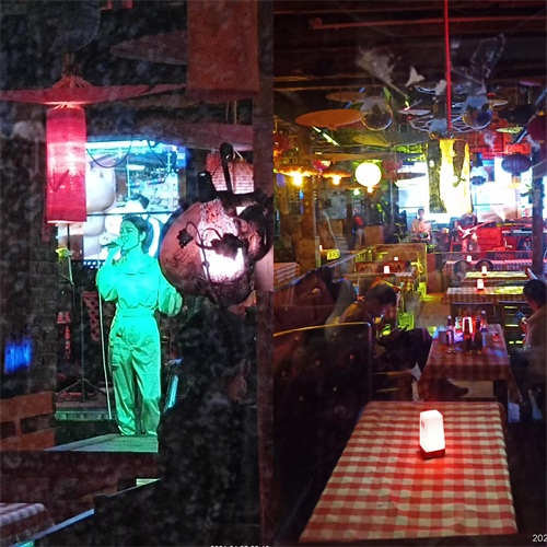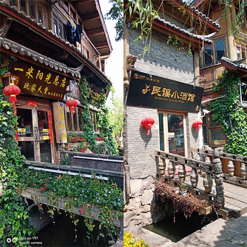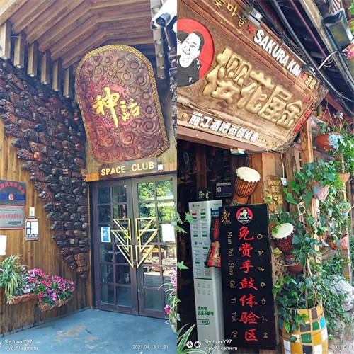 丽江的酒吧白天在睡觉,店中静谧无人,而一到夜晚就在摇滚、民谣的乐声中苏醒,门脸的彩灯和鲜花如七彩虹霓虹,充满了诱惑,召唤着游客。真是 “古城新曲夜升平,鬓影衣香春意浓”y