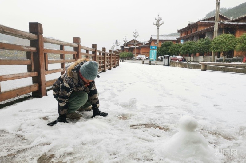 黔东南州剑河县市民正在堆小雪人(央广网发 杨家孟 摄)