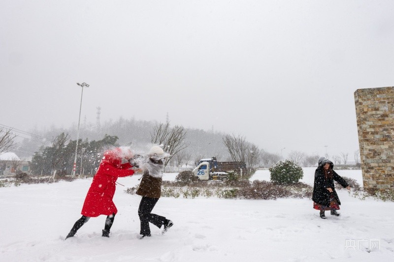 铜仁市万山区市民正在打雪仗(央广网发 肖浩 摄)