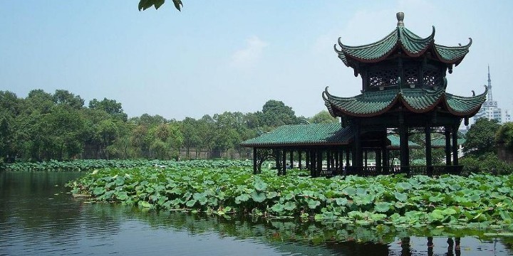 桂湖小巧玲珑,湖畔有杨柳楼、澄心阁、香世界、抗秋、绿漪亭和成林的桂花树。每逢中秋时节,荷花满塘,桂蕊飘香,一年一度的桂花会在这里举办。