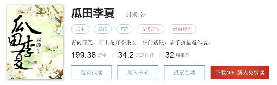 弱颜《瓜田李夏》:完本古言、种田经商、奋斗日常文