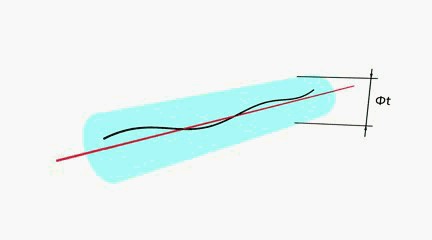 公差带是公差值∅t的圆柱面的区域,该圆柱面的轴线与基准轴线同轴。
