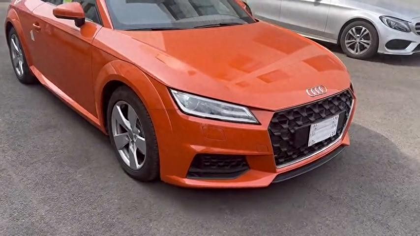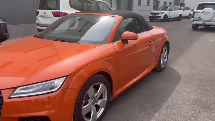 哈喽大家好,我是天津港小张。小张每天都会给大家带来不同的车型,今天给大家带来这款是奥迪tt2.0t的,这一款是敞篷版的跑车,目前在天津港售价是三十五、三十六都有车。