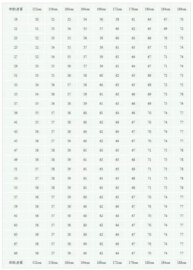 女子标准身高表