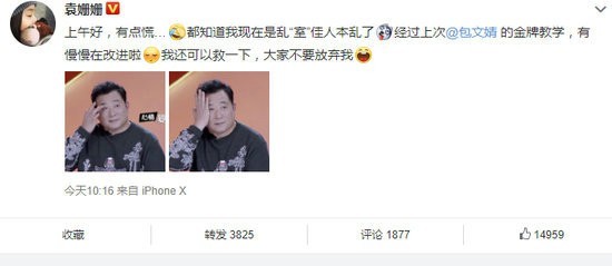 面对网友热议“袁姗姗的房间”,她回应称:“都知道我现在是乱“室”佳人本乱了。经过上次包文婧的金牌教学,有慢慢在改进啦。我还可以救一下,大家不要放弃我。”