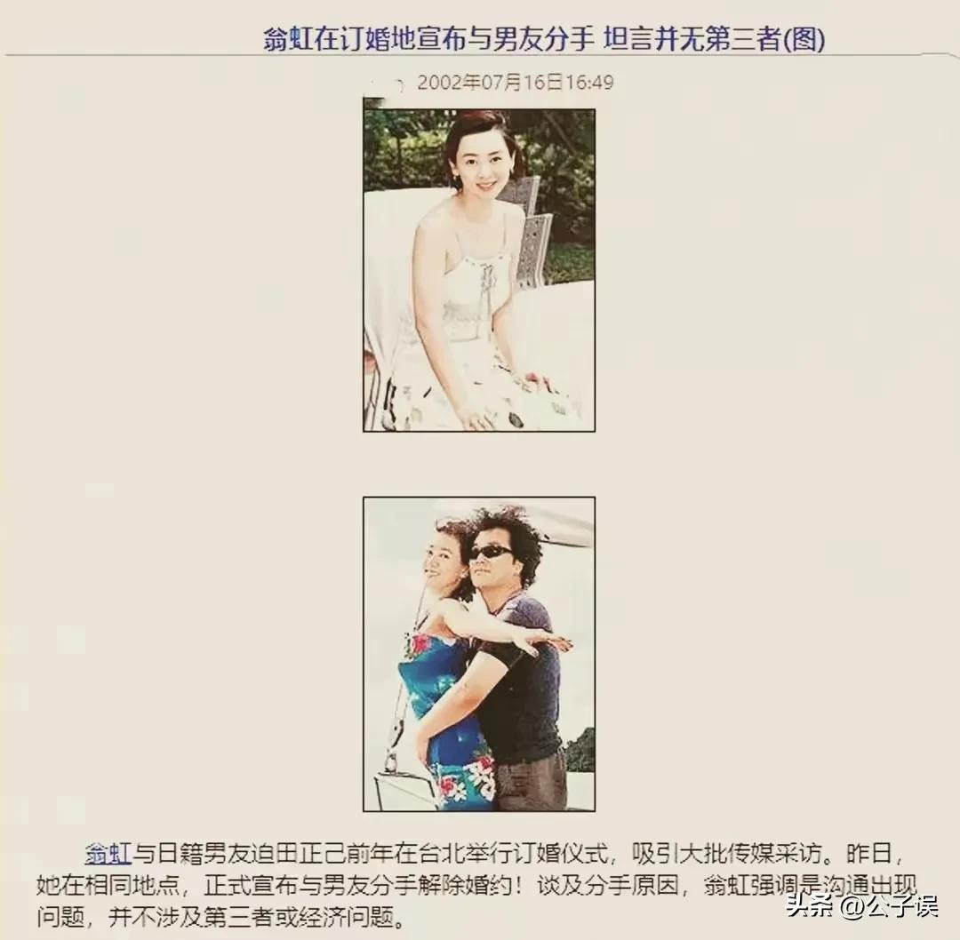 欠税风波之后,翁虹宣布与迫田正己分手。